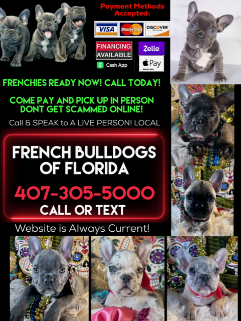 French Bulldog Puppies Available! 407-305-5500 WE ARE LOCATED IN ORLANDO FLORIDA & YOU CAN PICK UP LOCALLY IN LAKE NONA FLORIDA. FACETIME ALSO AVAILABLE.WE OFFER FINANCING & ACCEPT CREDIT CARDS.. CALL US: 407-305-5500. PLEASE CONTACT US, , AKC FRENCH BULLDOG PUPPIES WE HAVE ALL COLORS AVALABLE - STANDARD & EXOTICS - AKC FRENCHIES. DONT HESITATE - CONTACT US TODAY!407-305-5500 ---- https://FrenchieCentral.com