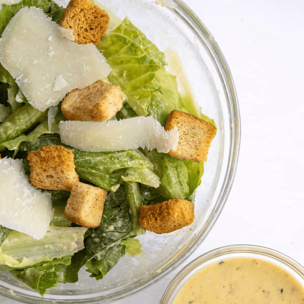 Romaine lettuce, Parmigiana cheese, and Caesar dressing
