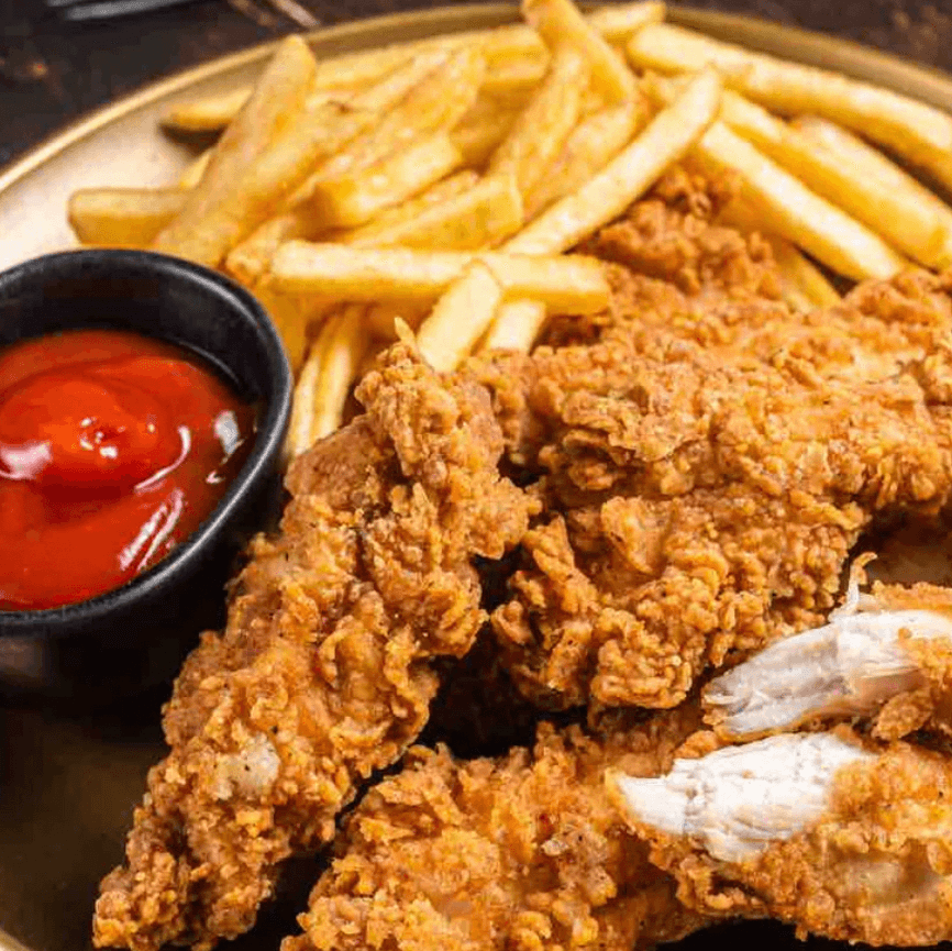 Deep fried chicken fillet with homemade tomato sauce, melted mozzarella, and toasted bread