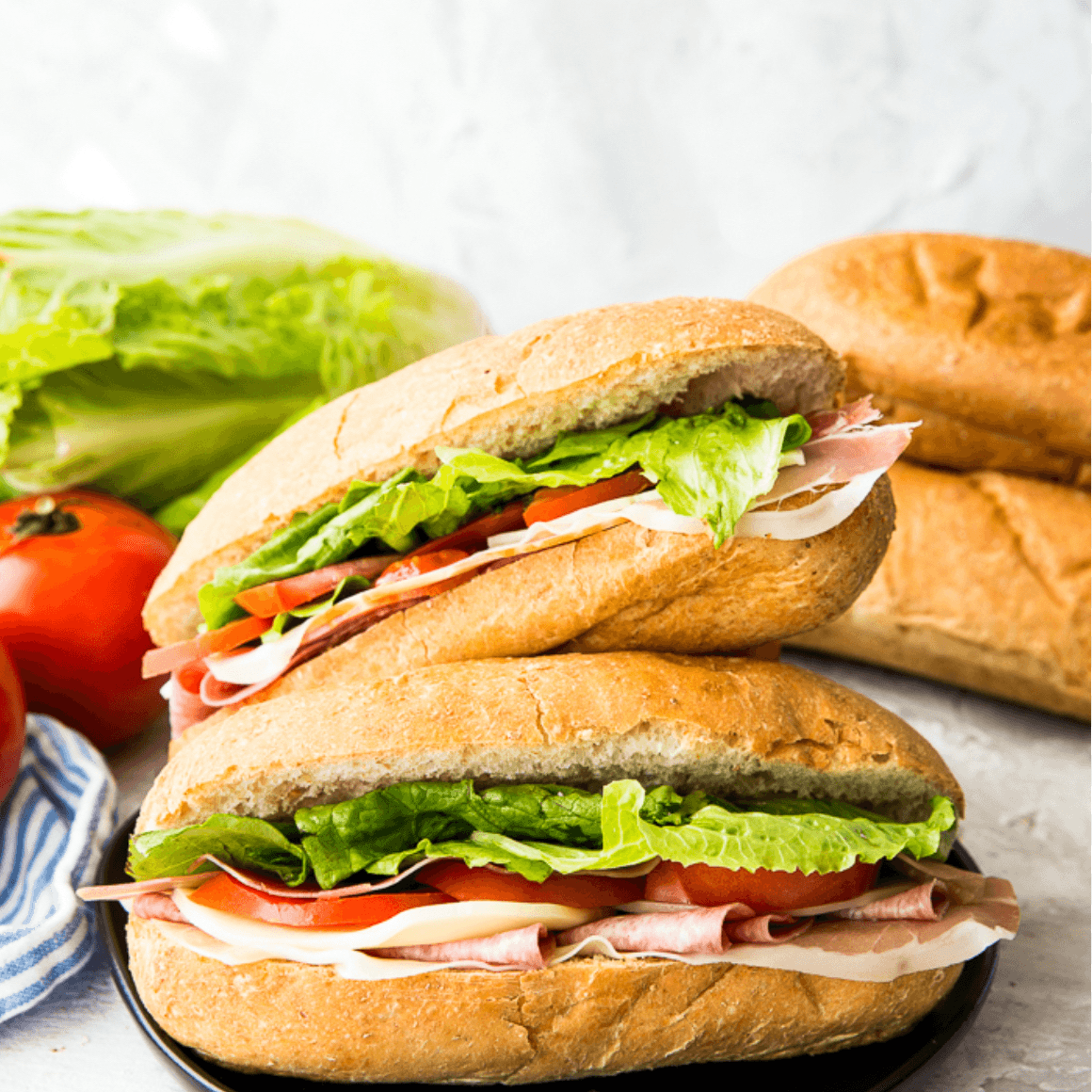 Soppressata, ham, capicola, provolone, lettuce, tomato, and onion with red wine vinaigrette