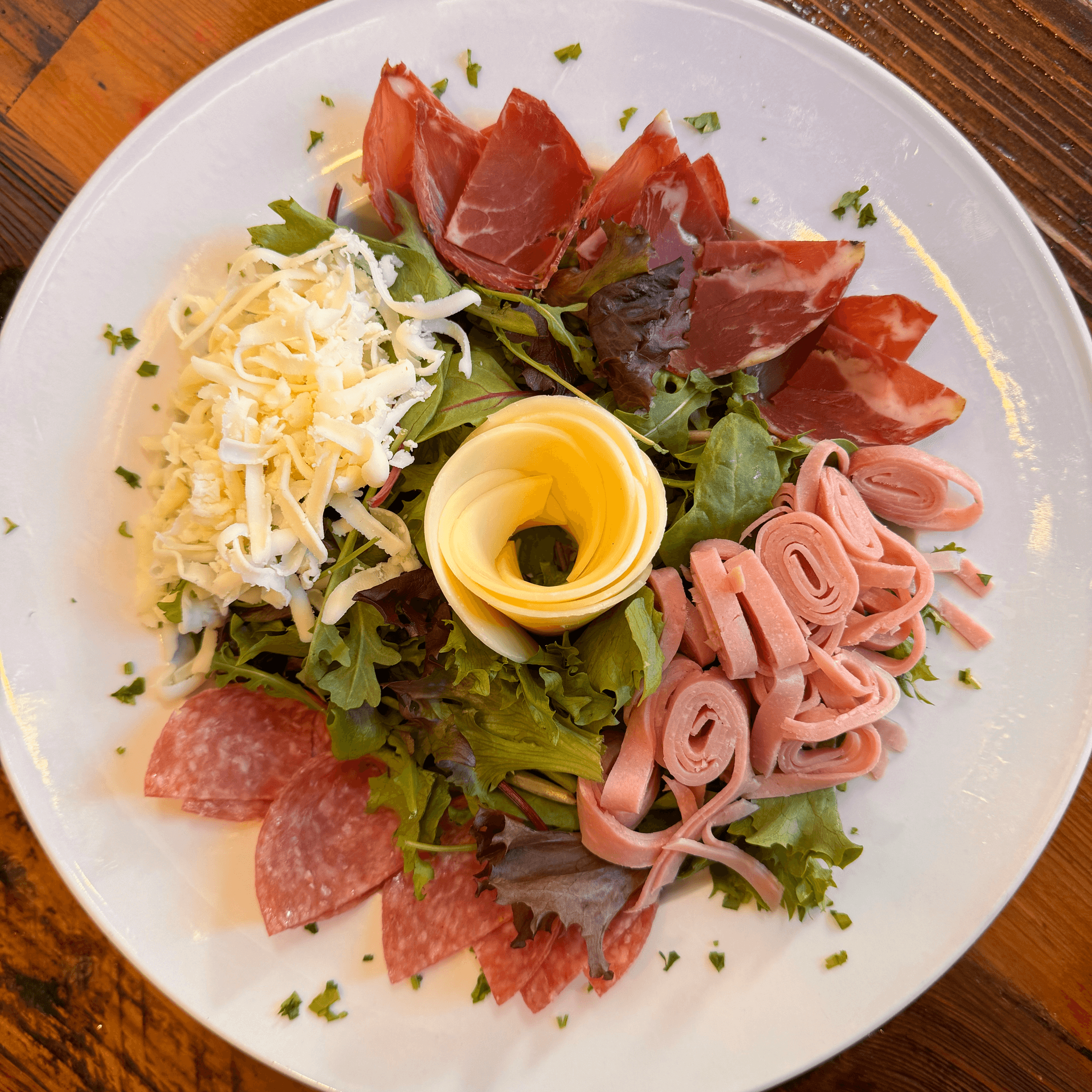 Mixed organic green veggies, provolone cheese, salami, and capicola with choice of dressing