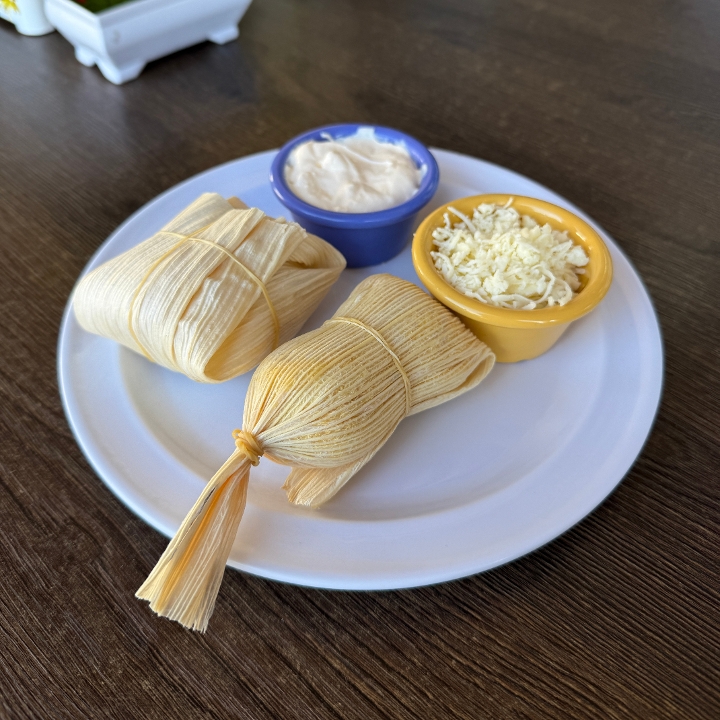 2 arepitas de maíz fritas con queso frito y la proteína de tu elección. (Carne asada o mechada - Pollo asado o mechado). / 2 fried corn arepitas with fried cheese and your favorite protein. (Grilled or shredded beef - Grilled or shredded chicken).