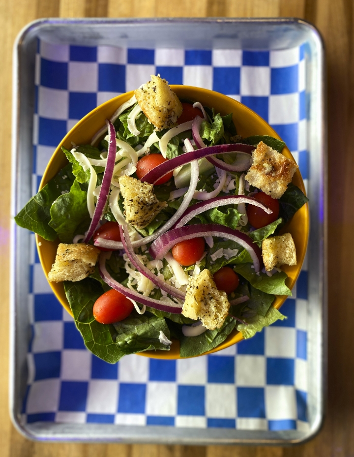 CHOPPED ROMAINE - TOMATO - RED ONION - BRICK CHEESE BLEND - HOUSE MADE CROUTONS (FOR EXTRA DRESSING VISIT OUR DRESSING TAB)