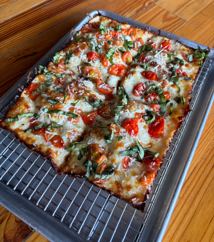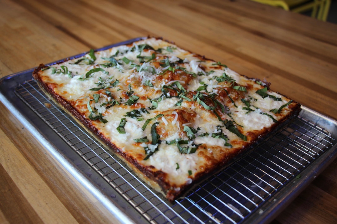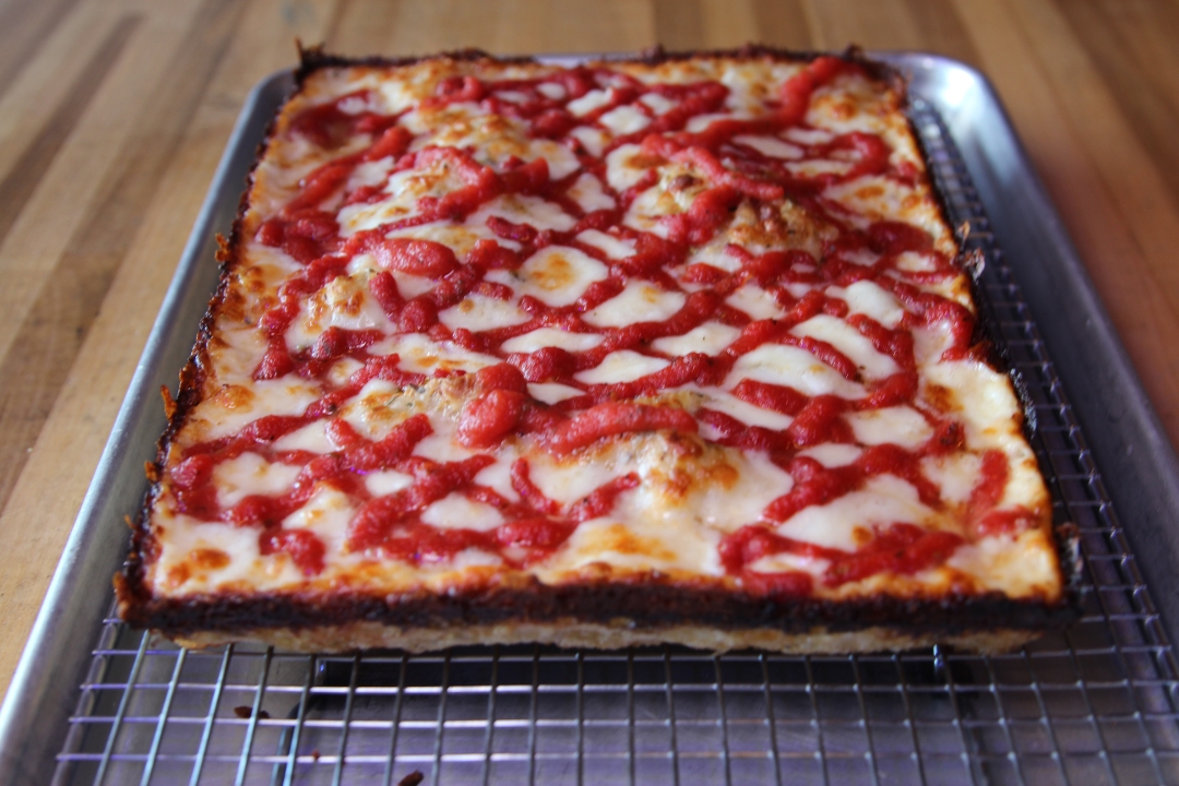 DETROIT RED SAUCE - BRICK CHEESE BLEND - FRESH BASIL - PECORINO ROMANO